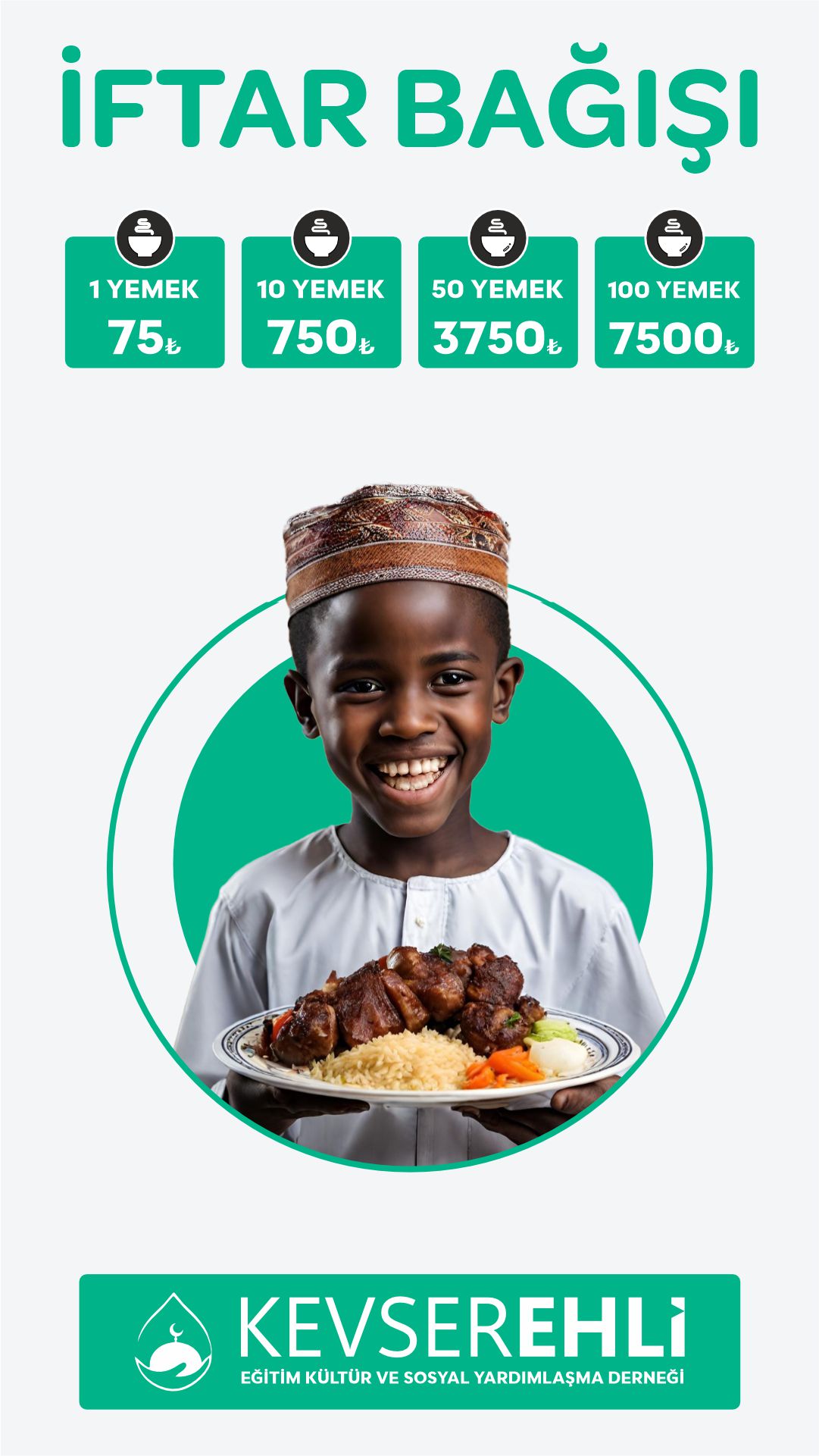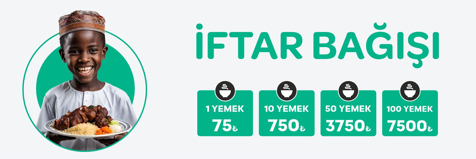 Sizler de 75 Tl bağış ile bir iftar bağışında bulunabilir veya 750 tl bağış ile Afrika’da bir sofra kurarak oradaki kardeşlerimize yemek ikram edebilirsiniz.